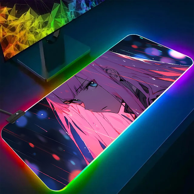 Великий світний килимок для комп'ютерної миші та клавіатури аніме 80х30х4 зі світлодіодною RGB-підсвіткою